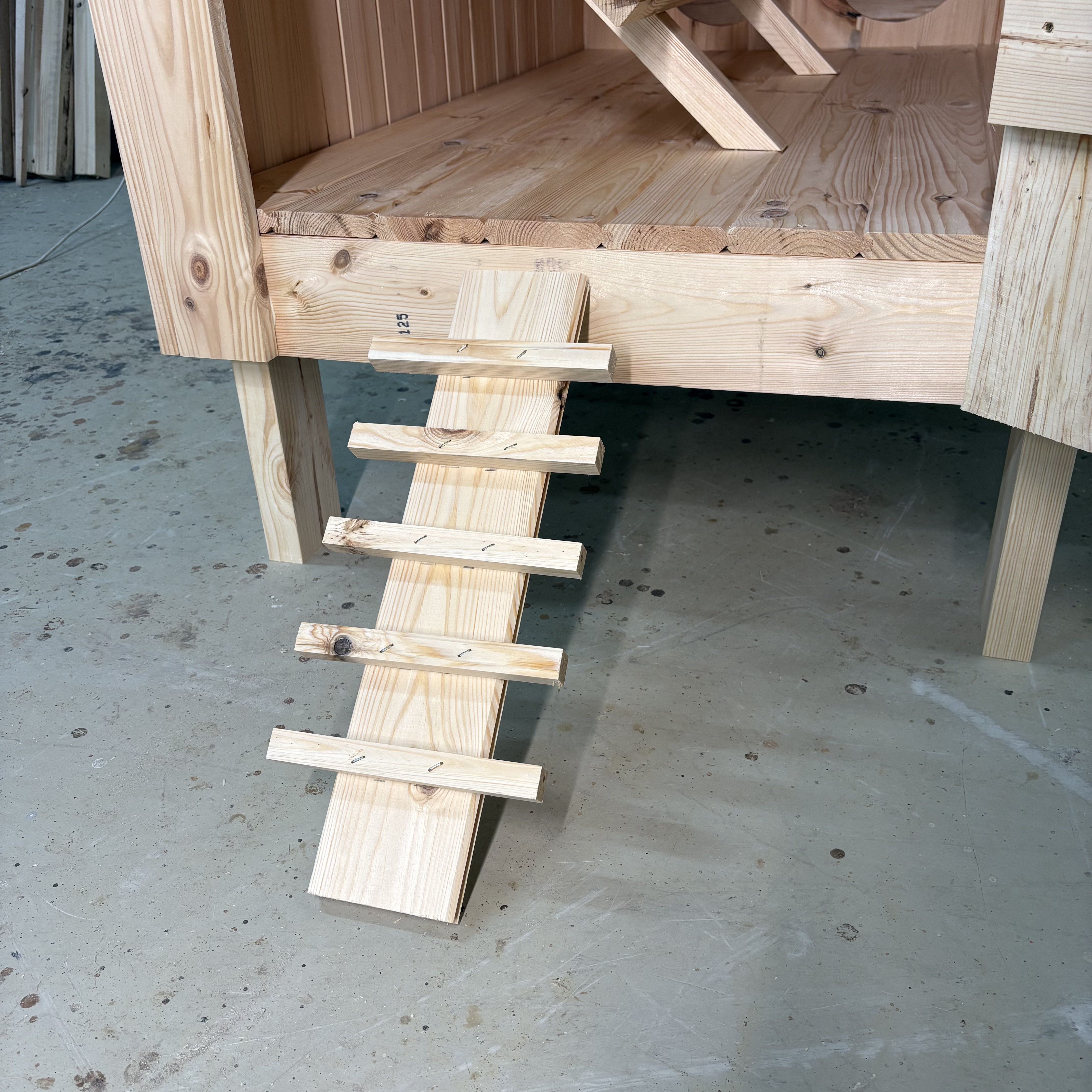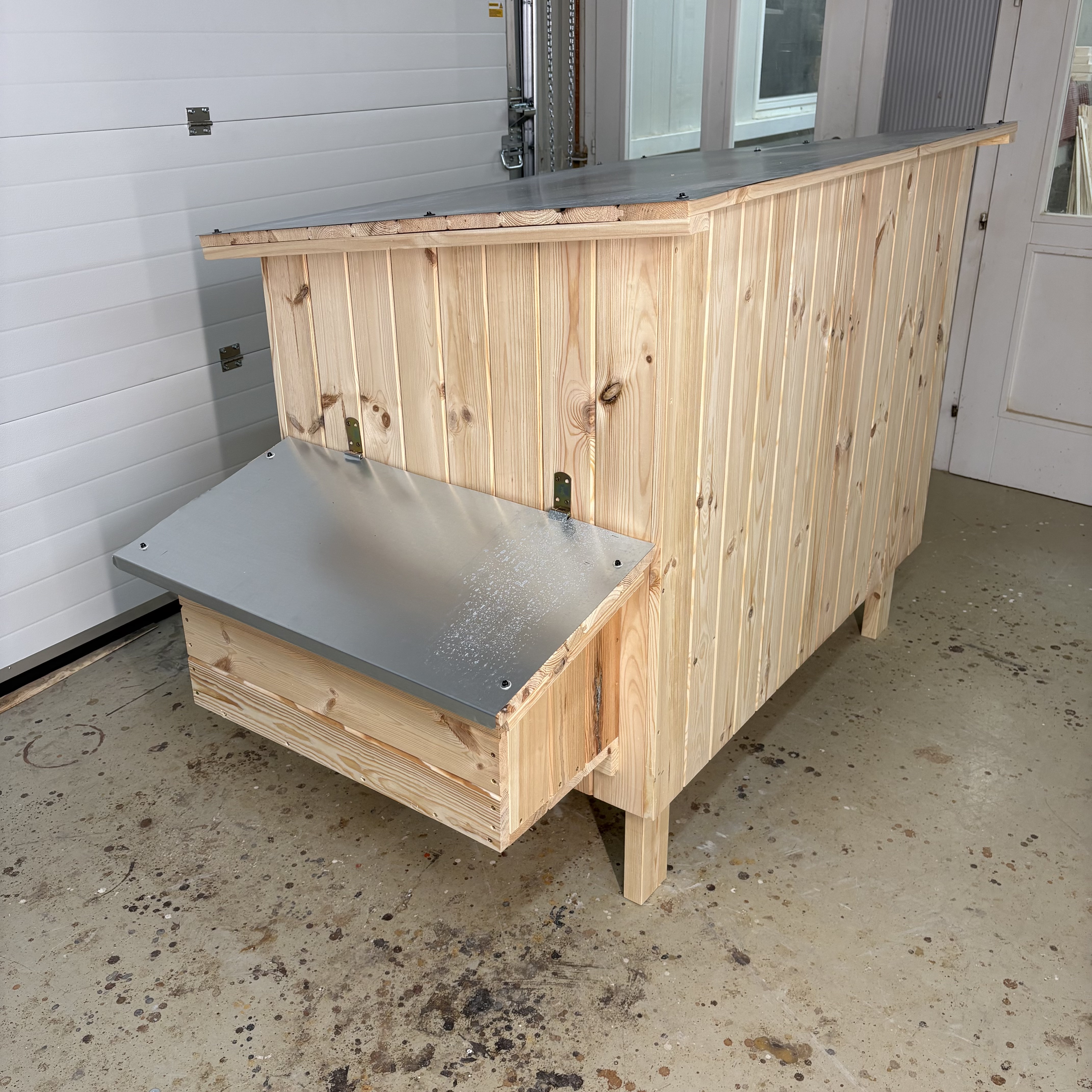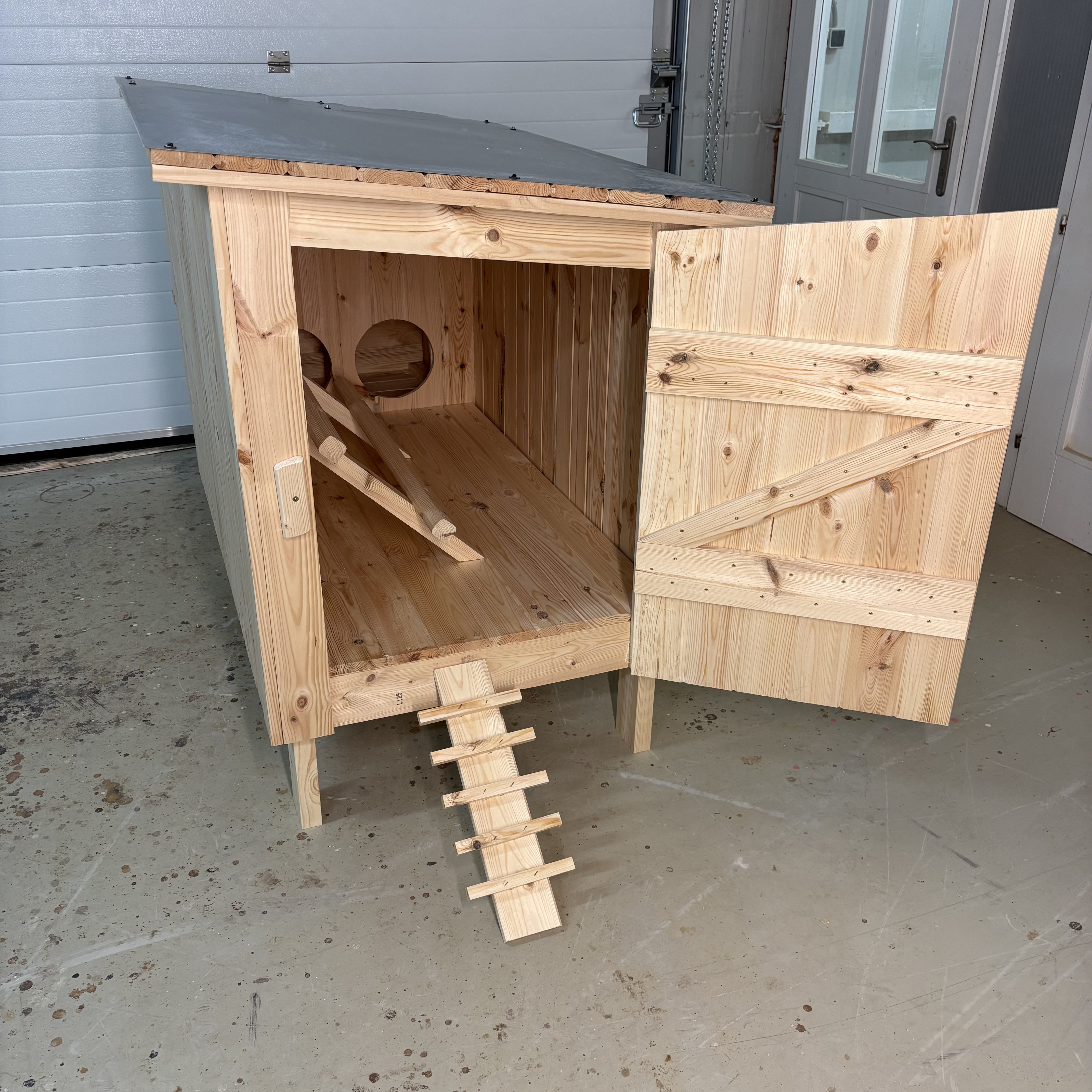 V základnej cene je zahrnuté: kompletná konštrukcia kurníka vrátane nožičiek, vonkajšie hniezdo na znášanie vajec s otvárateľnou strechou, vnútorný vyberateľný a výklopný rebrík (bidlo) pre komfortný spánok hydiny, prístupový rebrík a spojovací materiál. Kurník dodávame v stave, ktorý umožňuje rýchle zloženie a okamžité používanie.