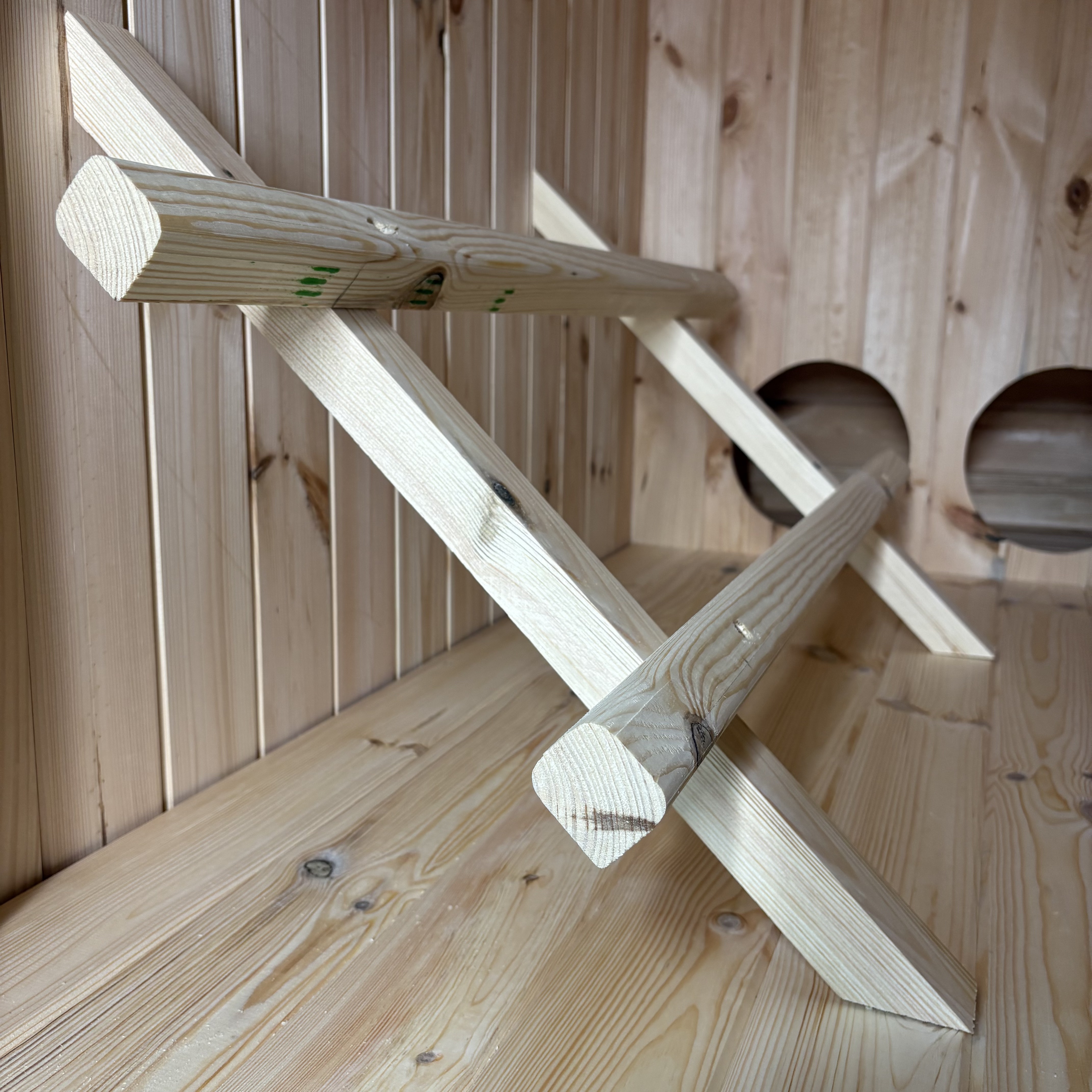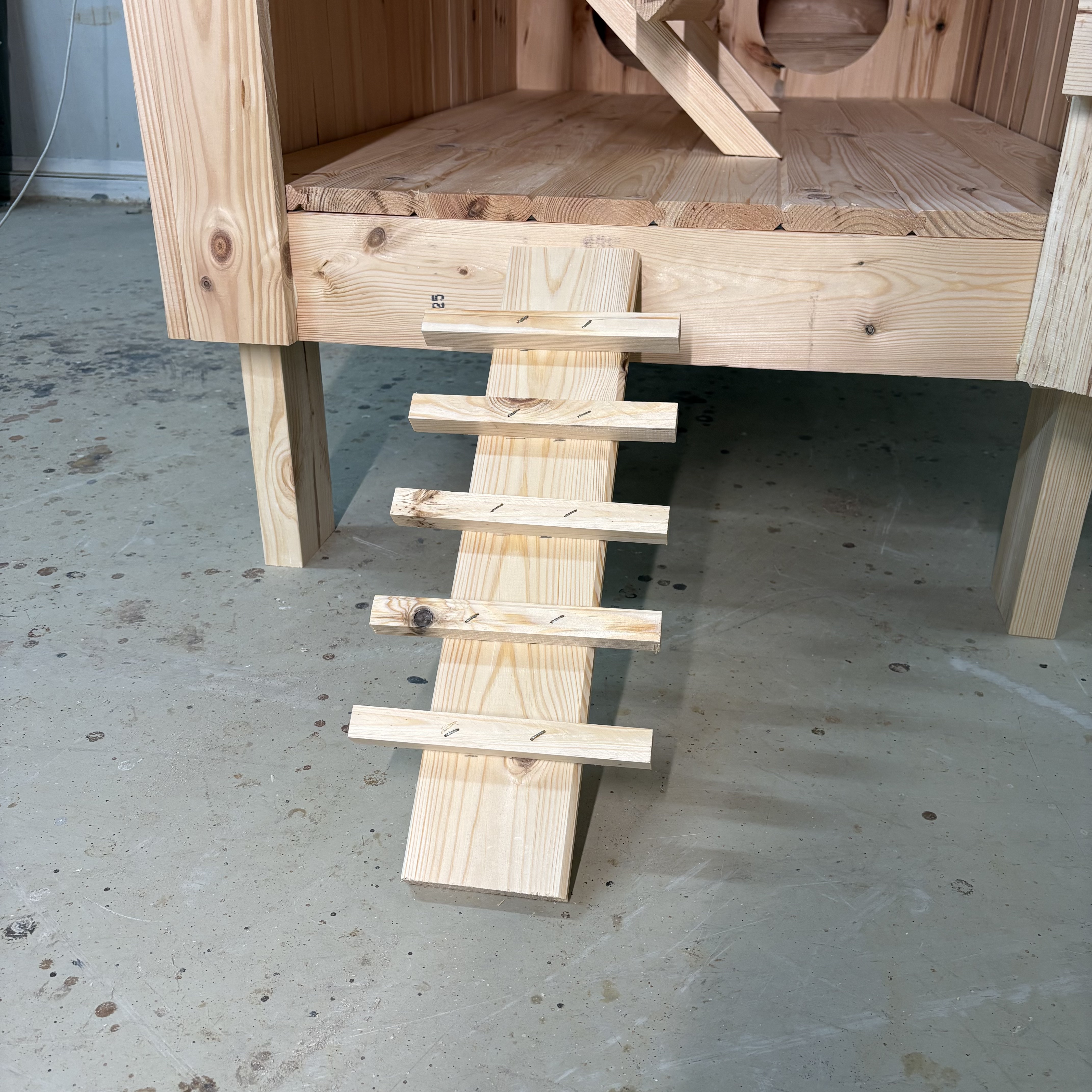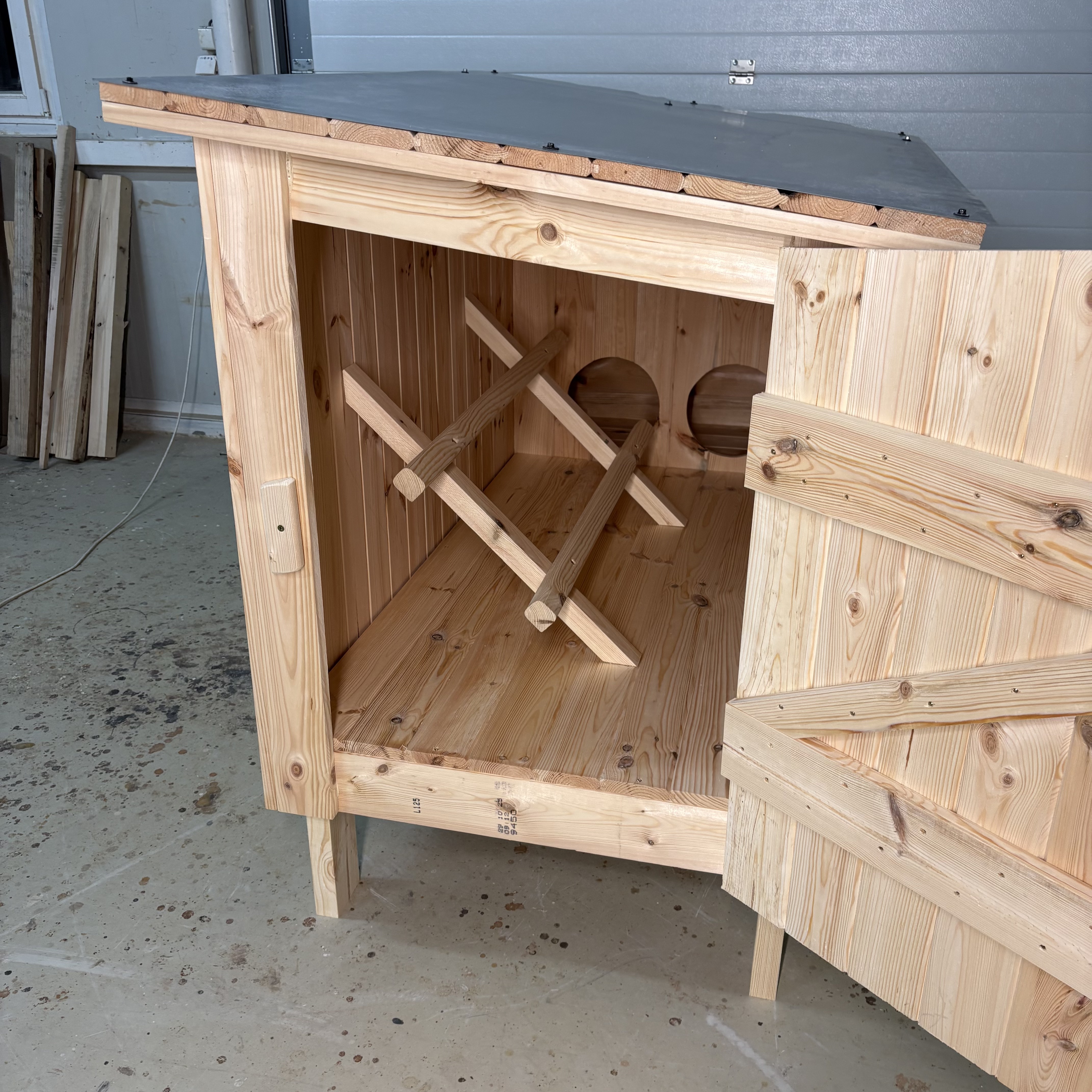 V základnej cene je zahrnuté: kompletná konštrukcia kurníka vrátane nožičiek, vonkajšie hniezdo na znášanie vajec s otvárateľnou strechou, vnútorný vyberateľný a výklopný rebrík (bidlo) pre komfortný spánok hydiny, prístupový rebrík a spojovací materiál. Kurník dodávame v stave, ktorý umožňuje rýchle zloženie a okamžité používanie.