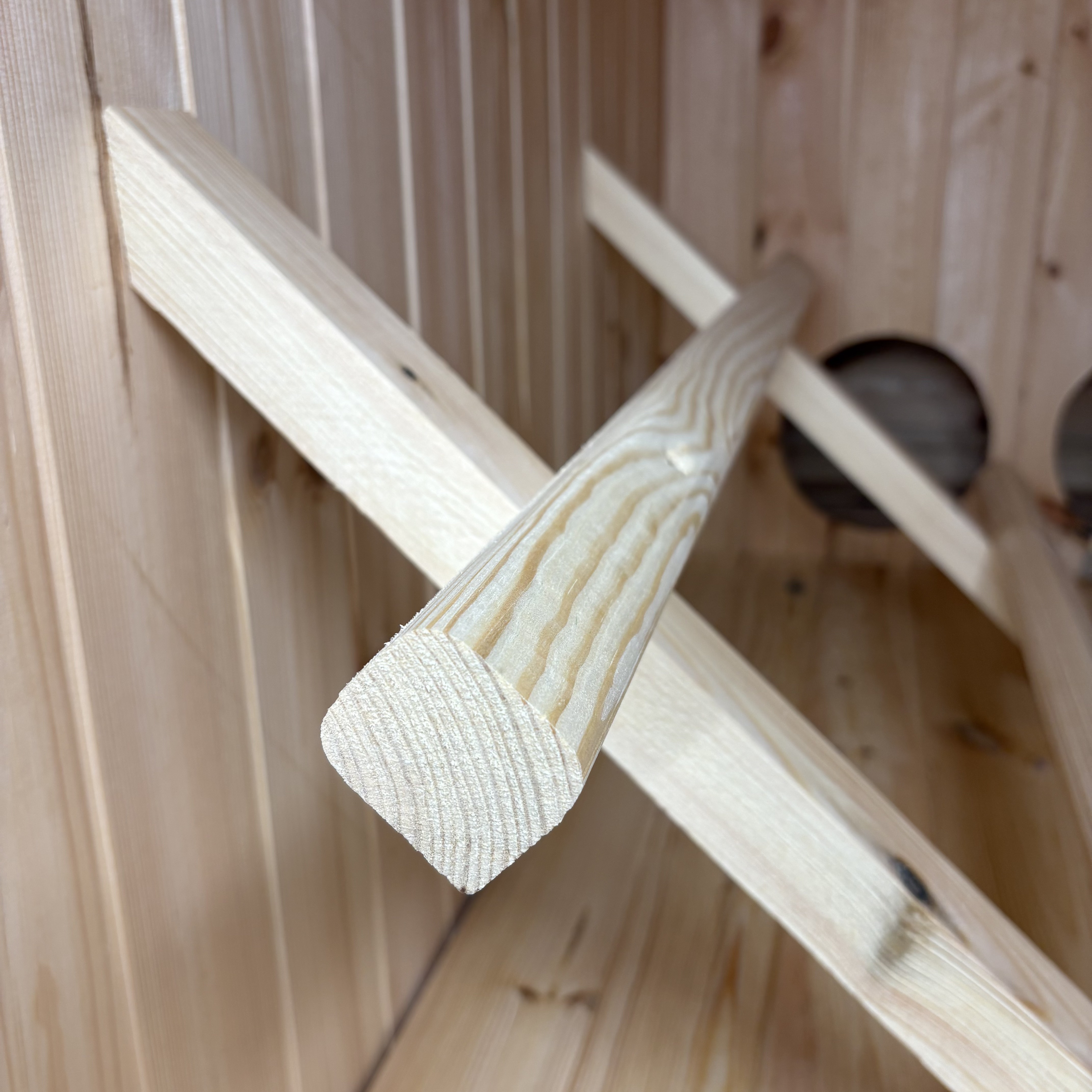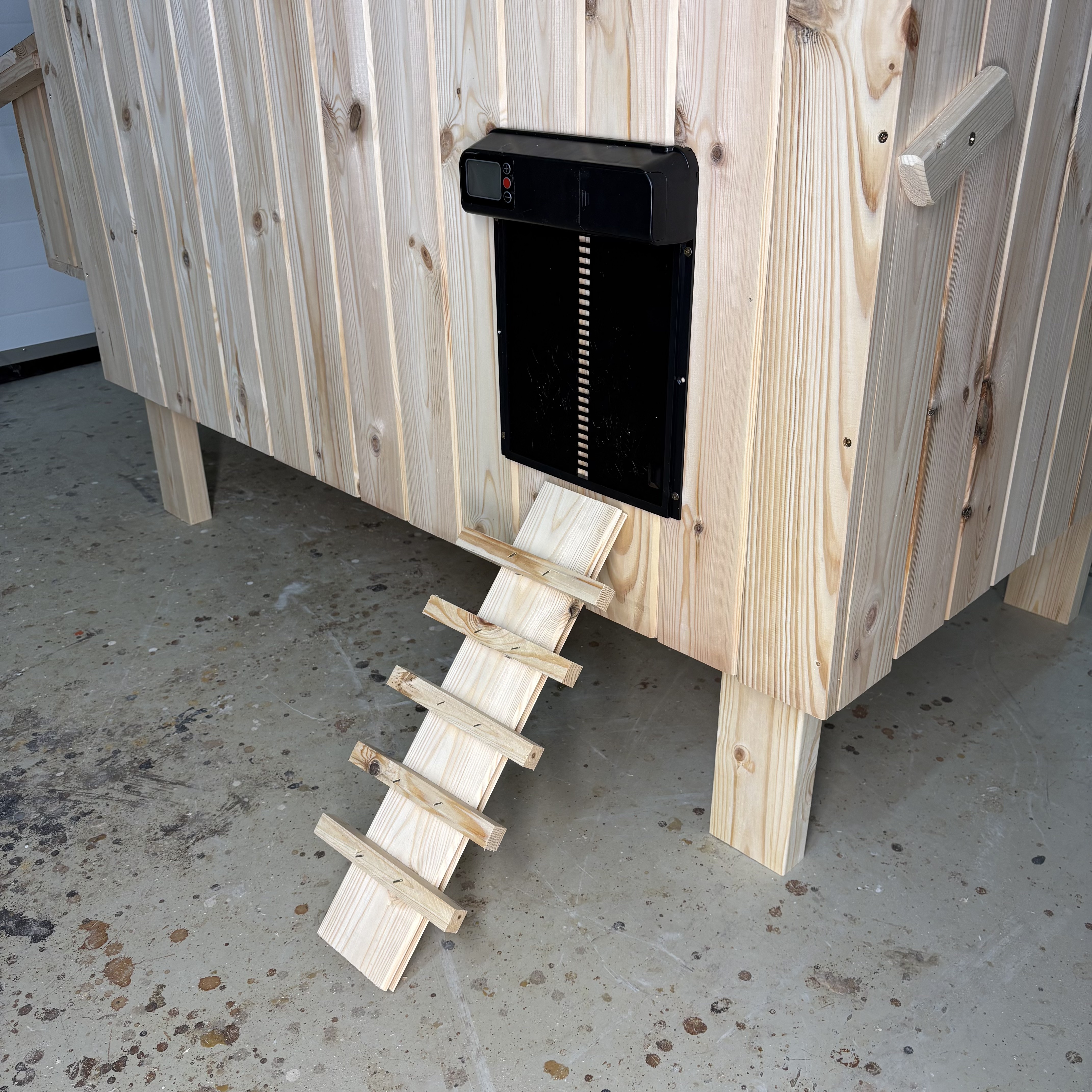 Na jeho výrobu je použité veľmi kvalitné a odolné borovicové drevo, ktoré vďaka hrúbke masívu až 20/22 mm a precíznemu spracovaniu zaručuje, že kurník neprefúka a odolá aj silným mrazom či letným horúčavám.